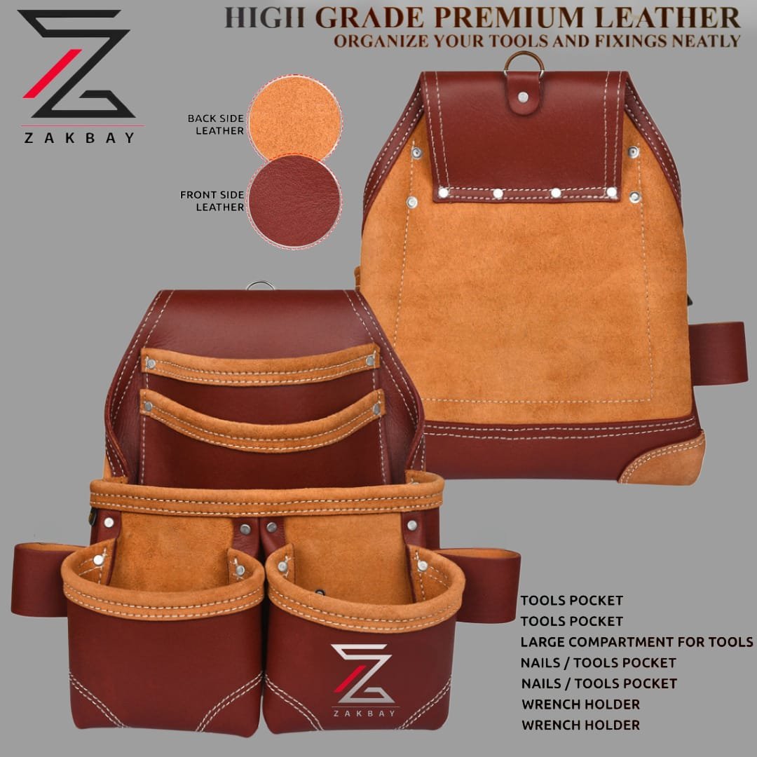 Zakbay Heavy-Duty Leather Tool Belt – Professional Grade for Carpenters & Technicians