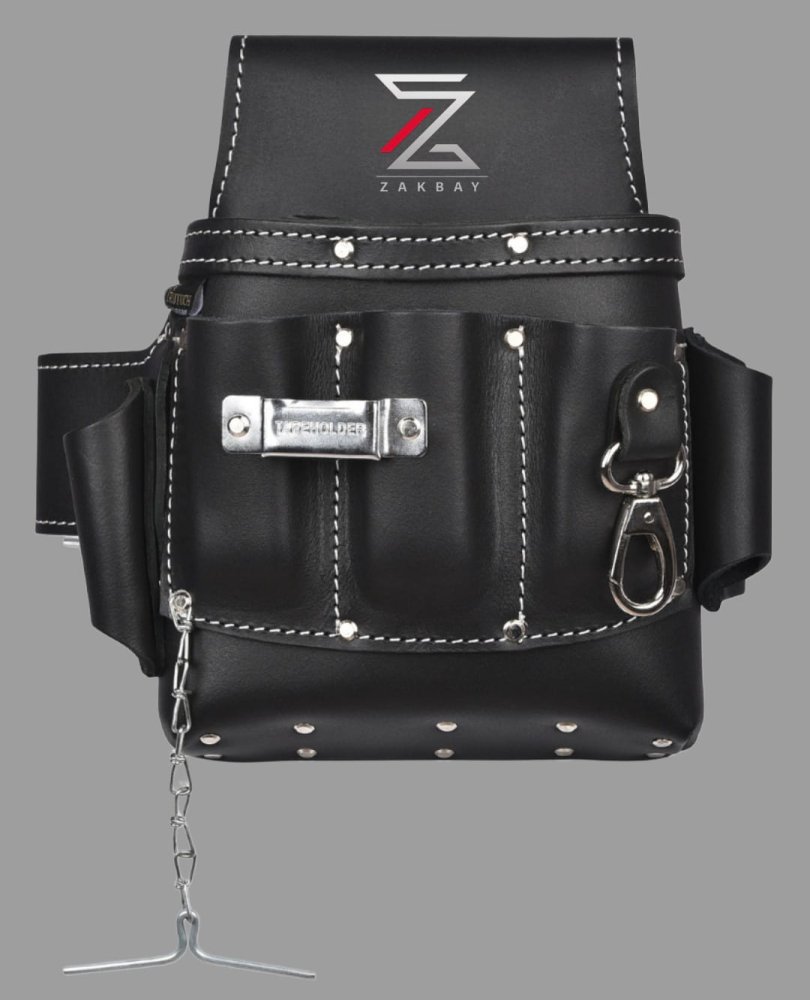 ZakBay Maroon Leather Electrician Tool Pouch – Electric Tool Bag for Men, Durable Contractor's Pouch with Multi Pockets