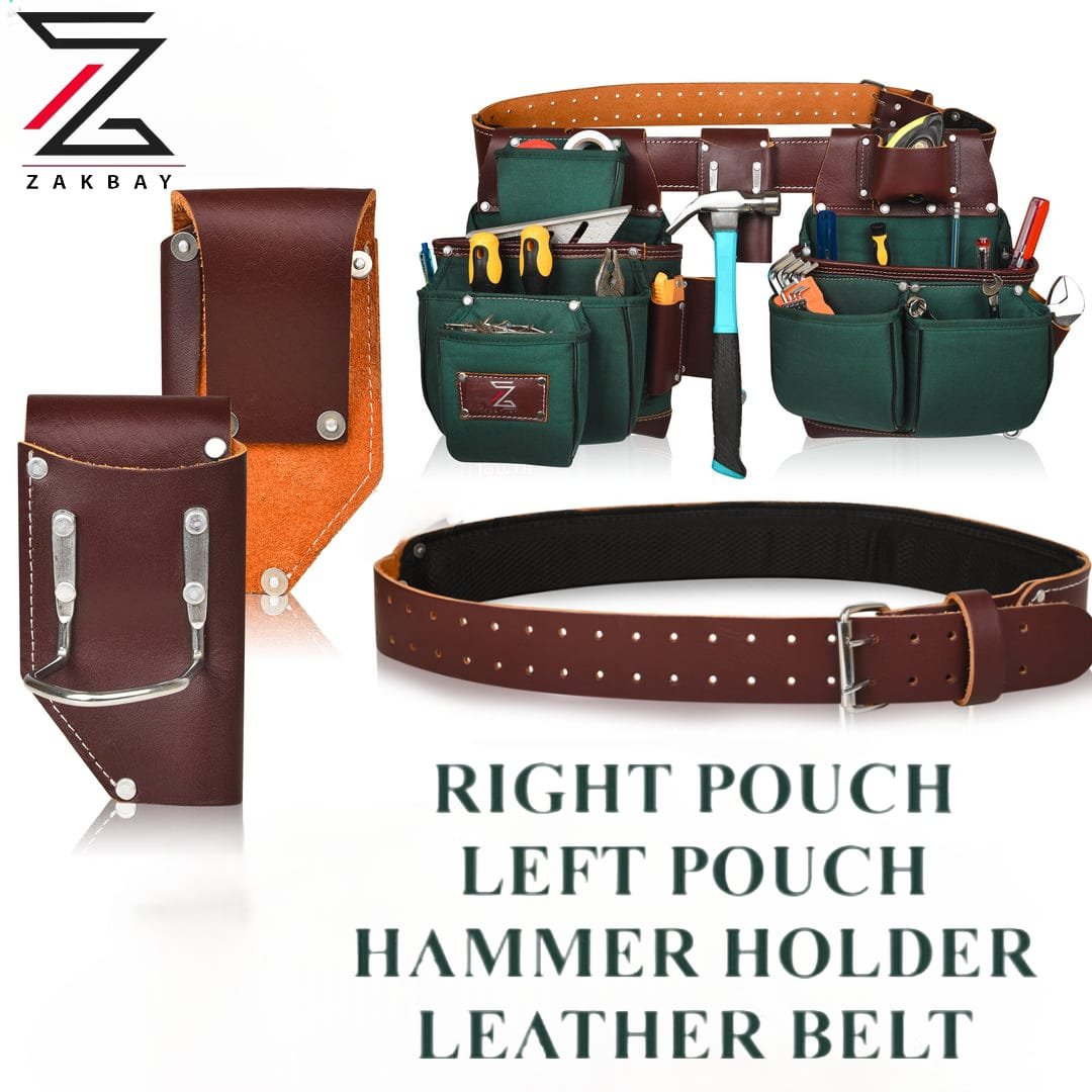Zakbay Heavy-Duty Leather Tool Belt – Professional Grade for Carpenters & Technicians